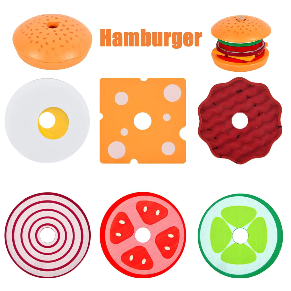 • 1x Brinquedo Educativo de Madeira Montessori – Sanduíche de Empilhar com Cartas de Comida para Crianças