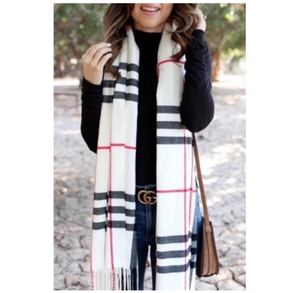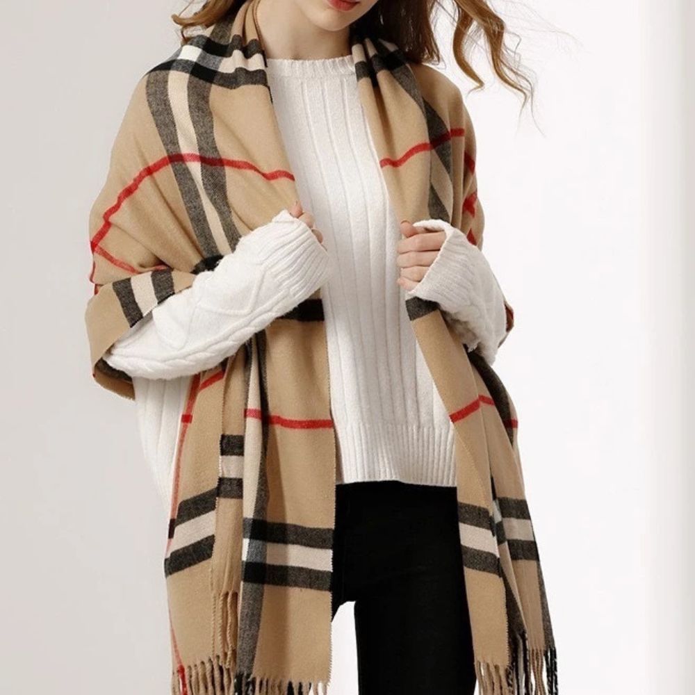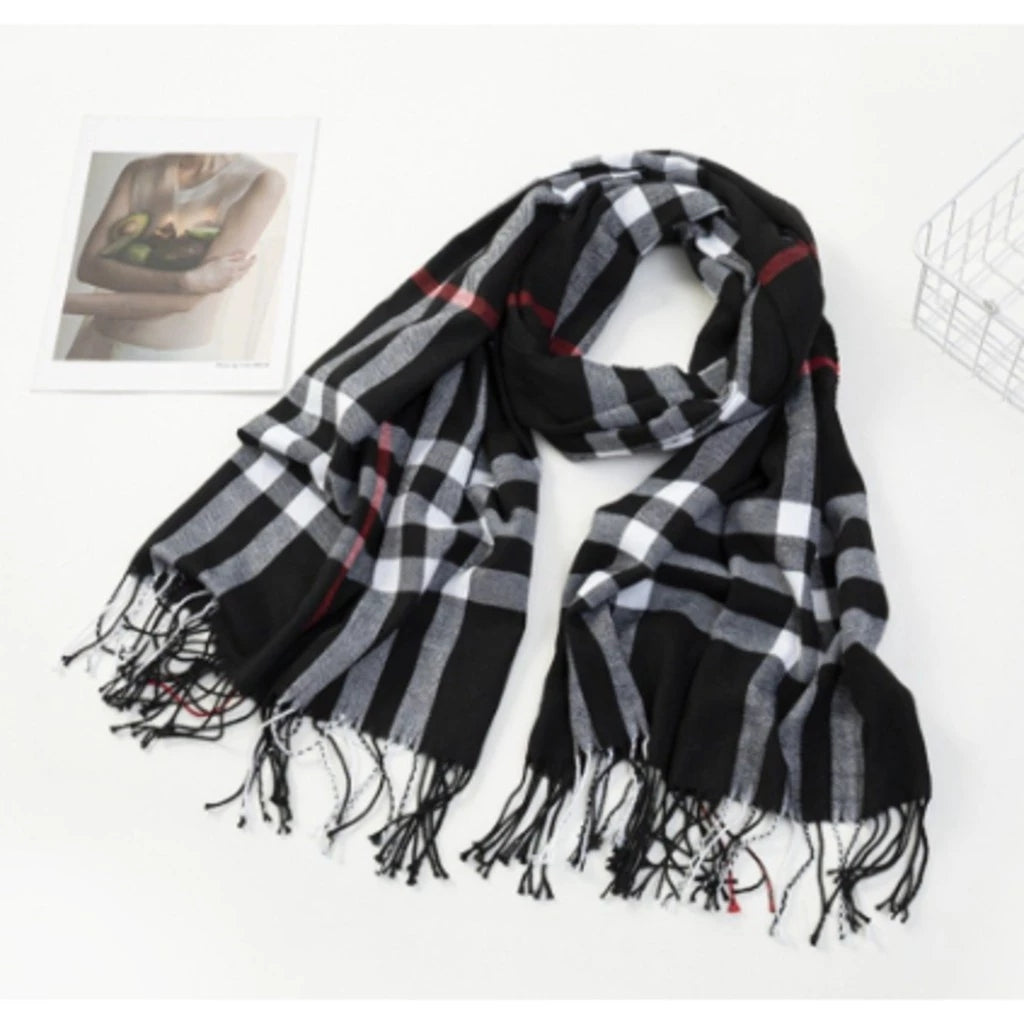 - 1x Cachecol Unissex Xadrez Clássico com Franjas para Inverno